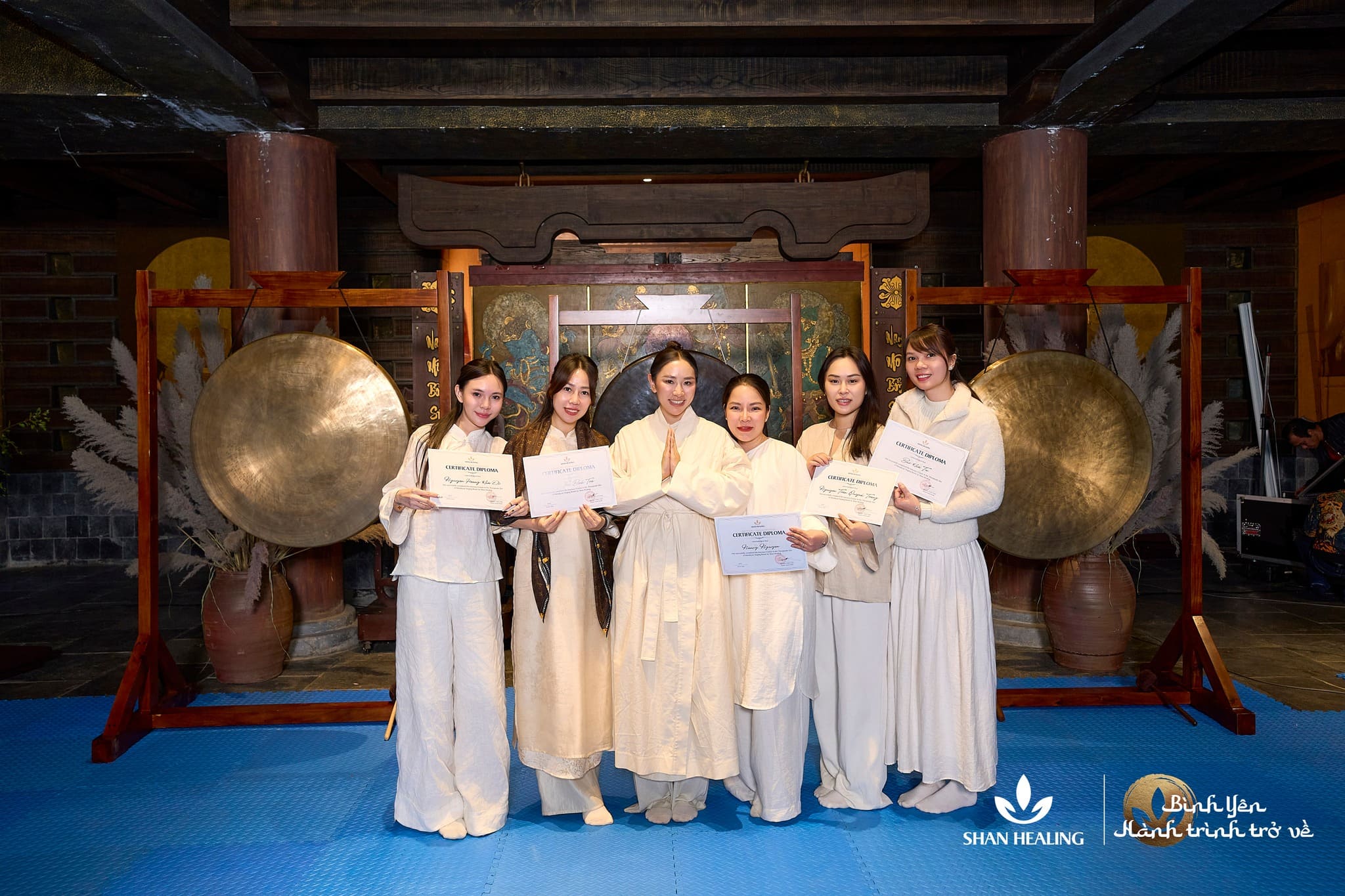 Ở lớp học trị liệu chuông xoay này, âm thanh không còn được tiếp cận như một “liệu pháp”, mà như một ngôn ngữ nguyên sơ của cơ thể. Chuông xoay, gong và các rung động sâu không tác động từ bên ngoài vào, mà đánh thức khả năng lắng nghe đã có sẵn bên trong mỗi người. Những bài chuông mới, những cách tiếp cận chưa từng được chia sẻ trong các lớp trước đây, được trao đi một cách rất chậm, rất kỹ, như thể mỗi rung động đều cần được đặt đúng chỗ để không làm tổn thương sự tinh tế của thân – tâm.
