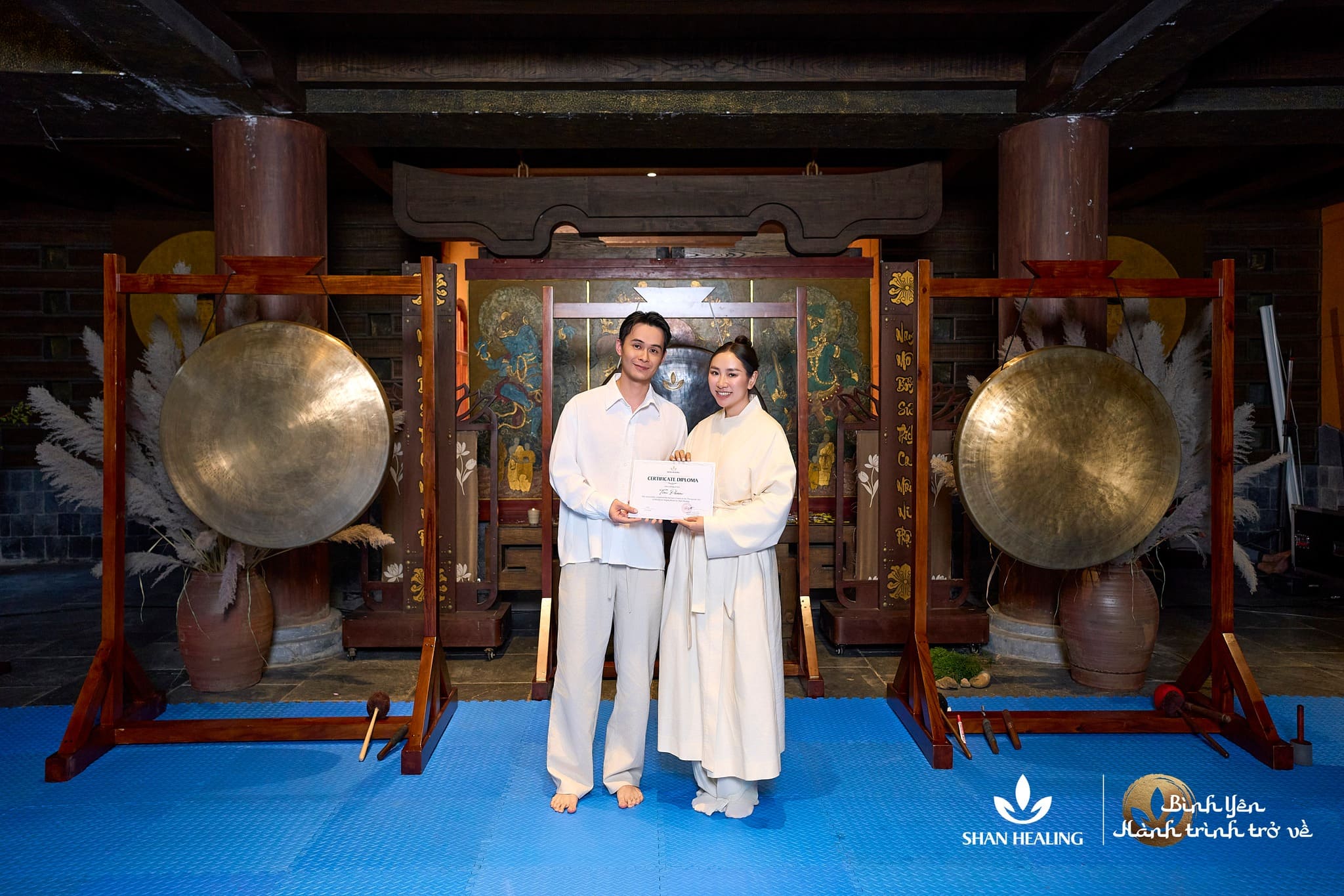 Giữa không gian Yên Tử bảng lảng sương và gió núi, có những khoảnh khắc mà sự im lặng trở nên có hình hài. Đó là khi thân thể vừa buông xuống sau những giờ thiền sáng, hơi thở chậm lại, tâm trí không còn chạy trước một bước nào nữa. Trong trạng thái ấy, buổi học nâng cao về âm thanh và trị liệu chuông xoay bắt đầu – không ồn ào, không phô diễn – mà lặng lẽ đi thẳng vào phần sâu nhất của sự nhận biết.